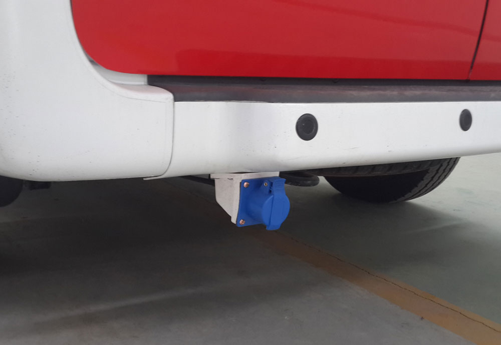 车后安装外接电源插座1只(220V15A防水、带防护盖),30米绕线盘1只,随车配备正弦波逆变器(带充电功能,接上外接220V电源,即可对主电瓶和辅电瓶同时充电。);免维护蓄电池(12V88A + 12V100A),持续供电一个小时以上,有效预防突发状况。