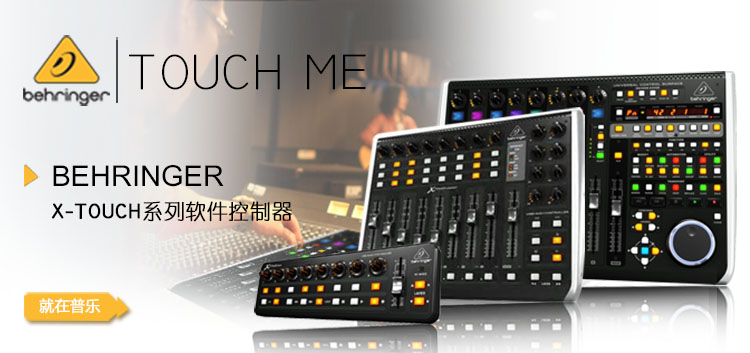 X-Touch,有 9 个触感电动推子, 8 个用于轨道名称和参数即时概览的 LCD Scribble Strips(LCD 标签条),再加上 8 个带有 LED 圈的旋转控制。含有 Dual-Layer(双层)模式和 USB/MIDI 连接,X-Touch 还有一个 Ethernet(以太网)端口。