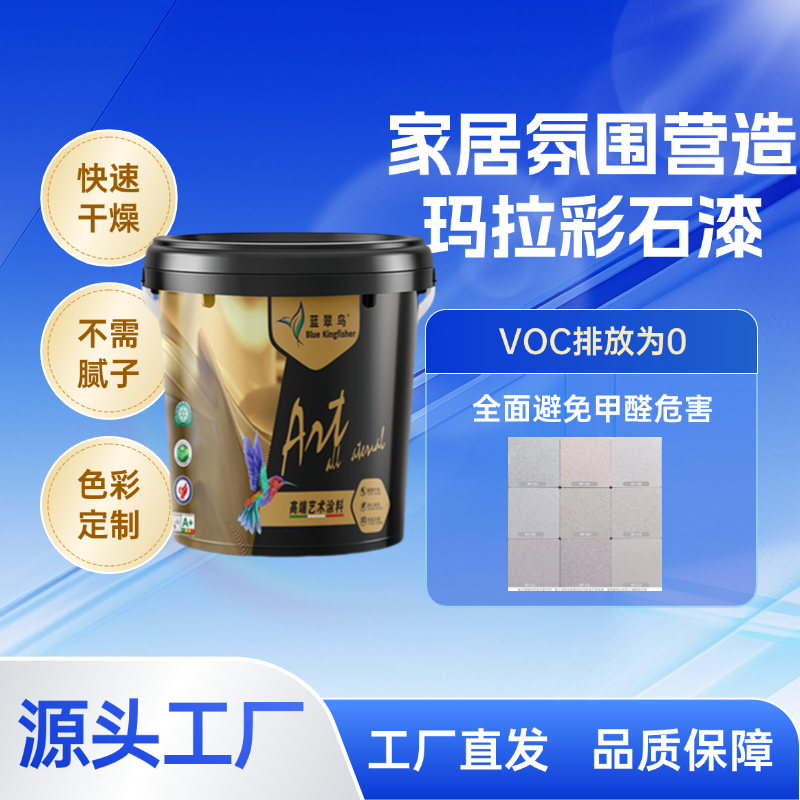 中山蓝翠鸟新型环保材料有限公司(原名:中山市五桂山耀王邦建材厂),2008年成立,位于故里中山市,持有“耀王邦”“蓝翠鸟”"绿洲水"注册商标,本厂从事建筑和工业化工涂料研发、生产、销售的新型科技型化工企业。主要产品包括:建筑涂料用:回填宝,找平宝,内外墙腻子粉,瓷砖粘结剂、内外墙乳胶漆、真石漆、多彩仿石漆、内外墙翻新涂料、防水涂料、水性金属漆、水性木器漆,水性地坪漆等,全部产品均按国际质量标准体系组织生产、检验。本着“以质取胜、环保先行、扎根本土、服务全国”的经营理念,产品在国内外建筑行业被广泛应用,并在业界积累了一定的品牌度和影响力。本公司将一如既往地秉承开拓拼博。求实、创新的企业精神和良心产品、健康至上原则,把好的产品供给市场、服务大众,与客户携手共进、续写辉煌。