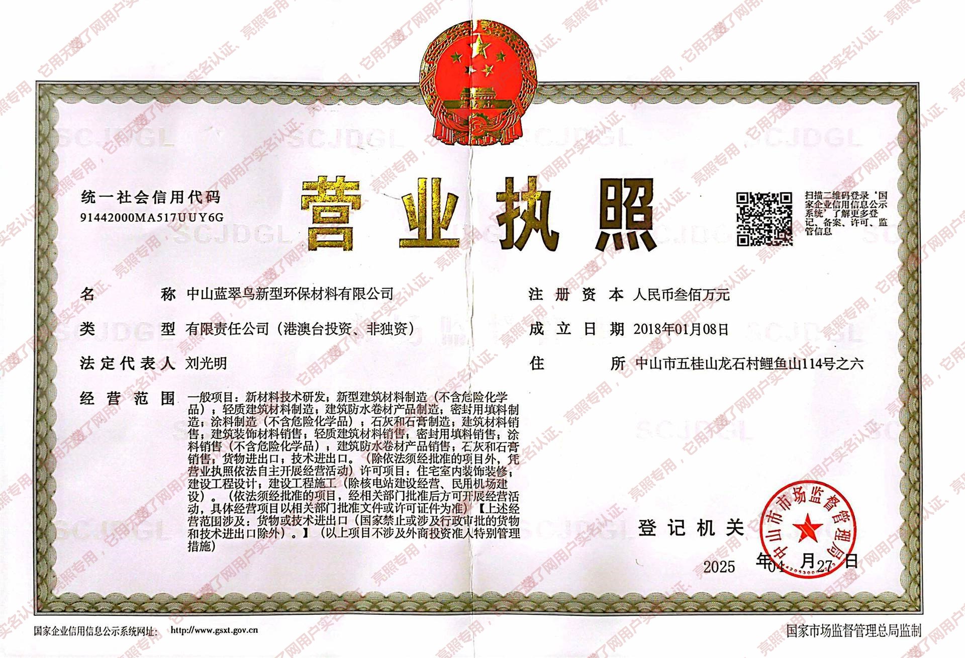 中山蓝翠鸟新型环保材料有限公司