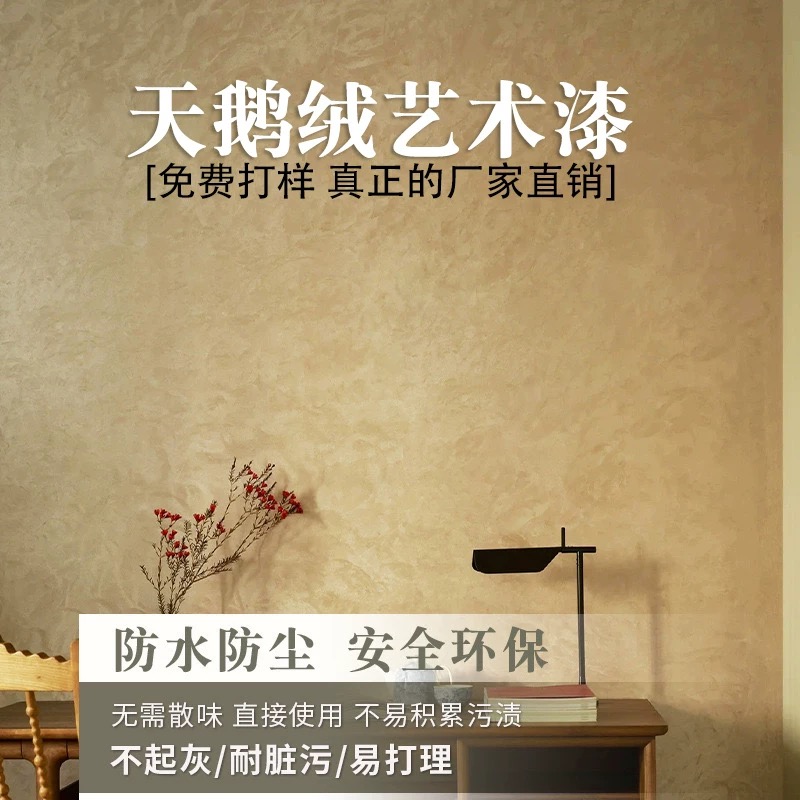 在维护方面,丝绒艺术涂料相对容易清洁。日常只需用湿布擦拭即可保持清洁,避免使用硬物或尖锐物品刮擦墙面。对于顽固污渍,可使用温和的清洁剂稀释后擦拭,并立即用湿布擦干。需要注意的是,丝绒艺术涂料对湿度较为敏感,湿度过高可能导致涂层起泡、脱落等问题。因此,在使用时需要注意控制室内湿度条件。