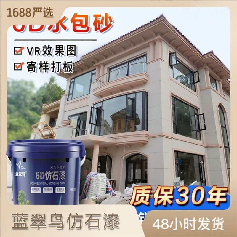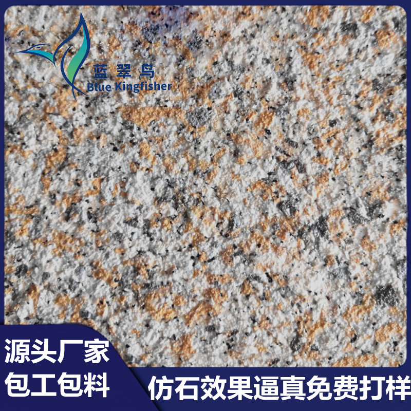 蓝翠鸟仿石漆,学名 “液态石”,是一种通过乳液、天然彩砂、助剂等多种成分精心调配而成的水性艺术涂料。它以高科技手段模拟天然石材的色泽、纹理与质感,从细腻温润的大理石纹到粗犷豪迈的花岗岩效果,皆能完美呈现,让建筑外墙瞬间摆脱平凡,绽放出石质建筑的经典韵味。