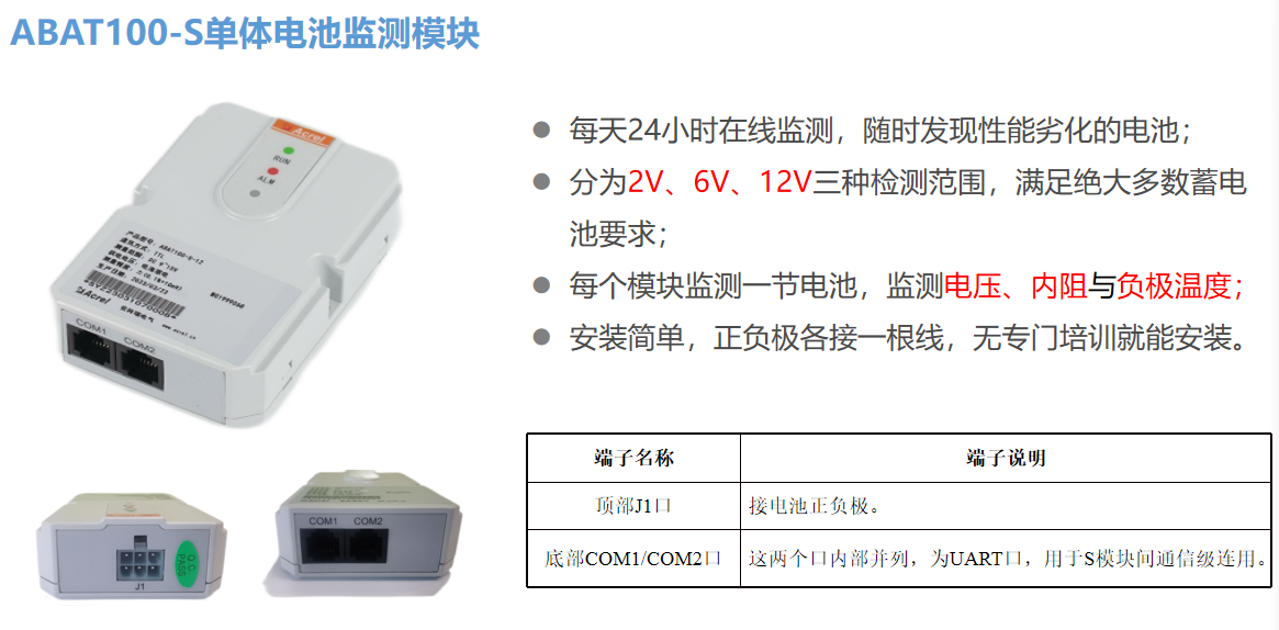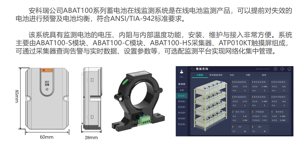 安科瑞ABAT100系列蓄电池寿命在线监测装置 数据监测电池温度