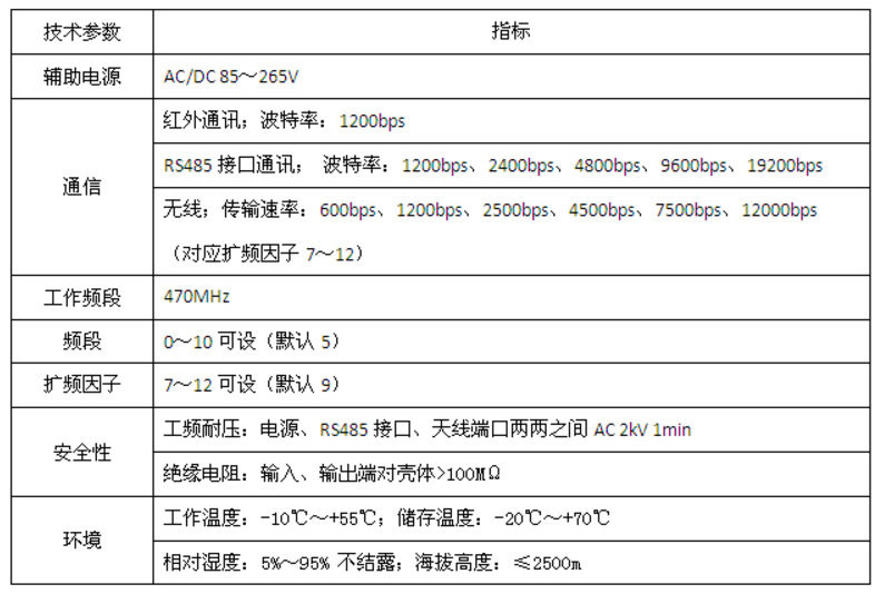功能: AEW110系列无线通讯转换器主要用于辅助RS485设备进行无线组网,通过将通讯数据在RS485信号与无线信号之间互转,完成普通RS485设备的无线通讯。 应用范围: 需无线组网的RS485通讯设备。 订货范例: 具体型号:AEW110 技术要求:470MHz工作频段 通讯协议:RS485 辅助电源:AC220V