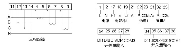 注1:适用于单相电能表及开关量为8DI/2DO的场合;