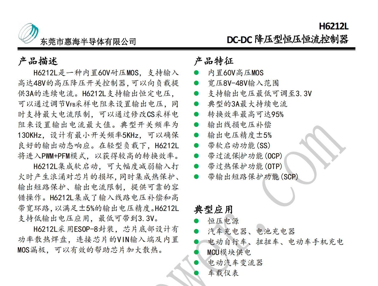 东莞市惠海半导体有限公司(hxc-power),注册资金1000万,总部位于东莞南城CBD,东莞大道旁,蛤地地铁站出口,毗邻京港澳高速出口,交通极为便利,现有管理人员及技术人员60多人,自购1200平方的写字楼办公室。公司拥有十多项发明及新型实用专利,已经获得科技型中小企业、ISO9001质量管理体系认证,并获得广东省守合同重信用企业等荣誉,专精特新也在筹备申请中。
