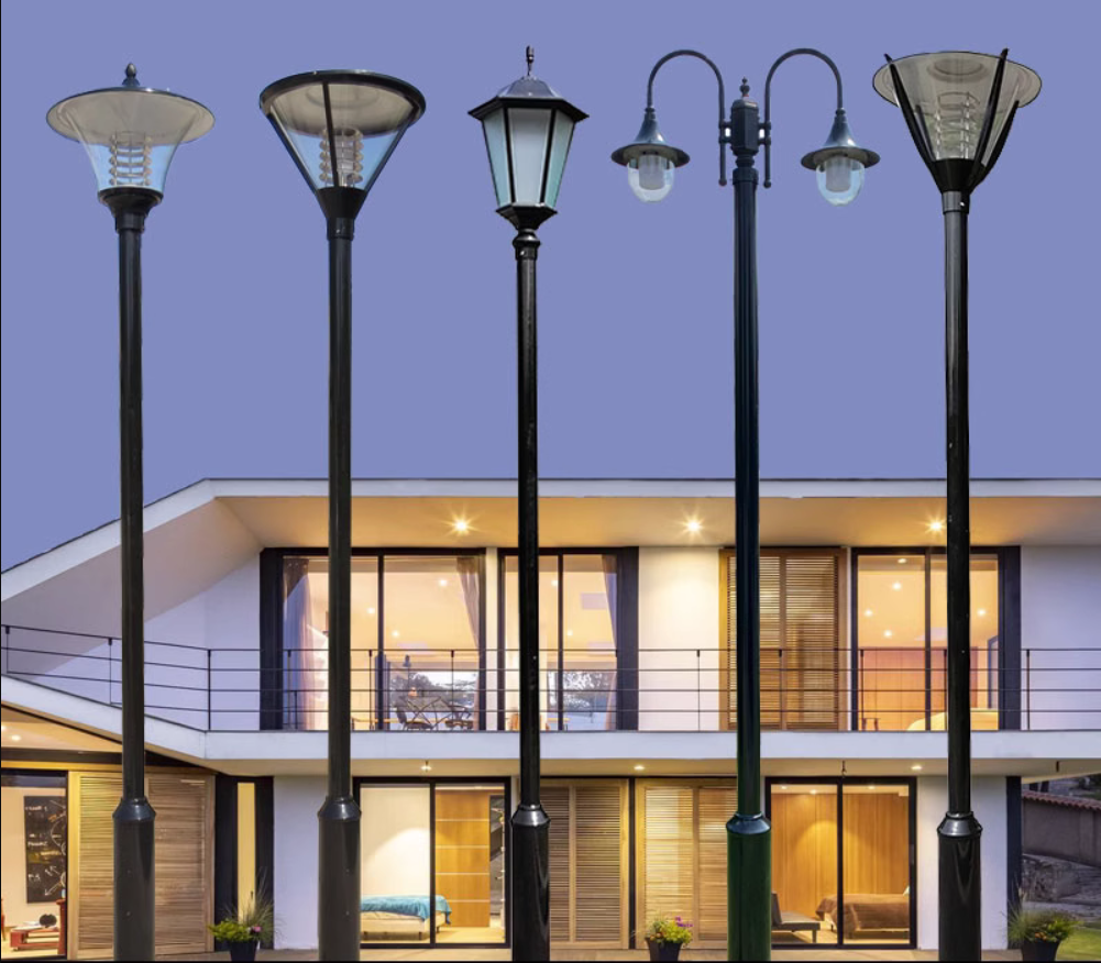 欧式仿古风格庭院灯:借鉴了欧洲古典建筑的元素,如罗马柱、巴洛克风格等,外观庄重典雅,线条流畅,给人一种古朴而高贵的感觉1。