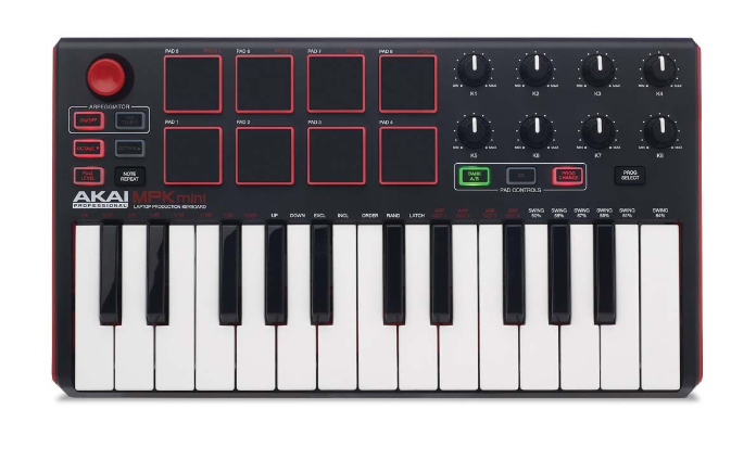 移动时不会失去控制。新款MPK mini是一款超紧凑型键盘控制器,专为旅行音乐家和桌面制作人而设计。借助一系列硬件控件,MPK mini可以让您随时随地通过虚拟乐器,效果插件和DAW进行录制,组合和演奏。它具有25个力度敏感的合成键,一个用于动态音高和调制操纵的4向拇指操纵杆,8个背光力度敏感的MPC式打击垫以及8个可分配的Q-Link旋钮。另外,两家银行将MPC样式的打击垫数量扩展到16个,以扩展创意功能。