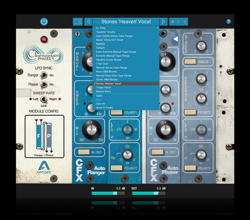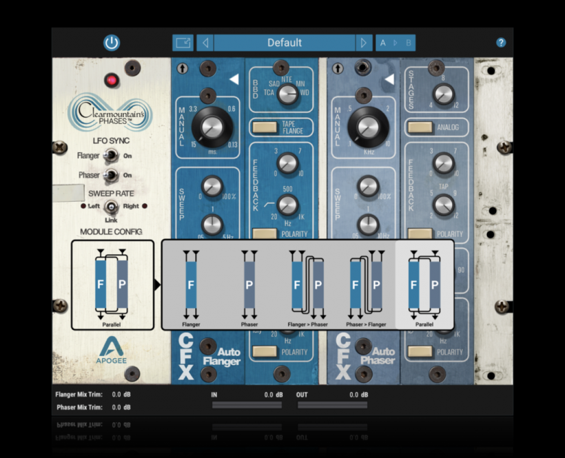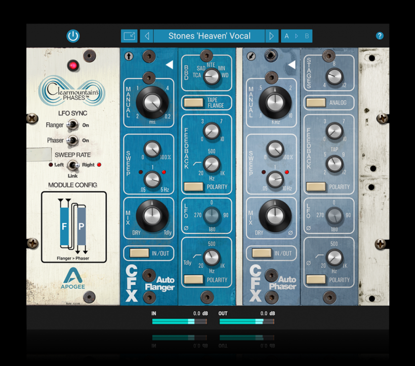 通过Apogee全新开发的Module Config工具将镶边器和移相器结合起来,以获得复杂的信号路径和音色调制,提供了超越原始硬件的无限可能性;