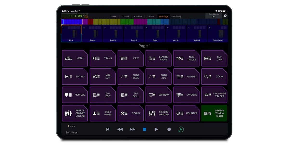 通过直观的屏幕控件,您可以快速点击、滑动和拖动各种应用程序功能和参数。从调整电平、声像和插件设置,到监听控制、VCA展开和自动化,您可以浏览和加速处理任何项目。没有繁琐的鼠标或触控板点击。