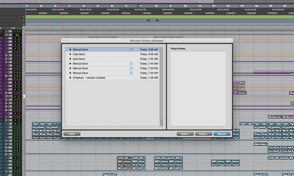 访问Pro Tools修订历史记录