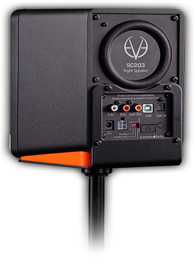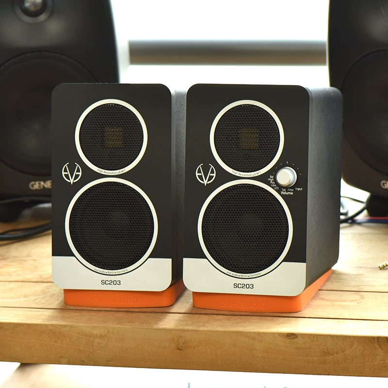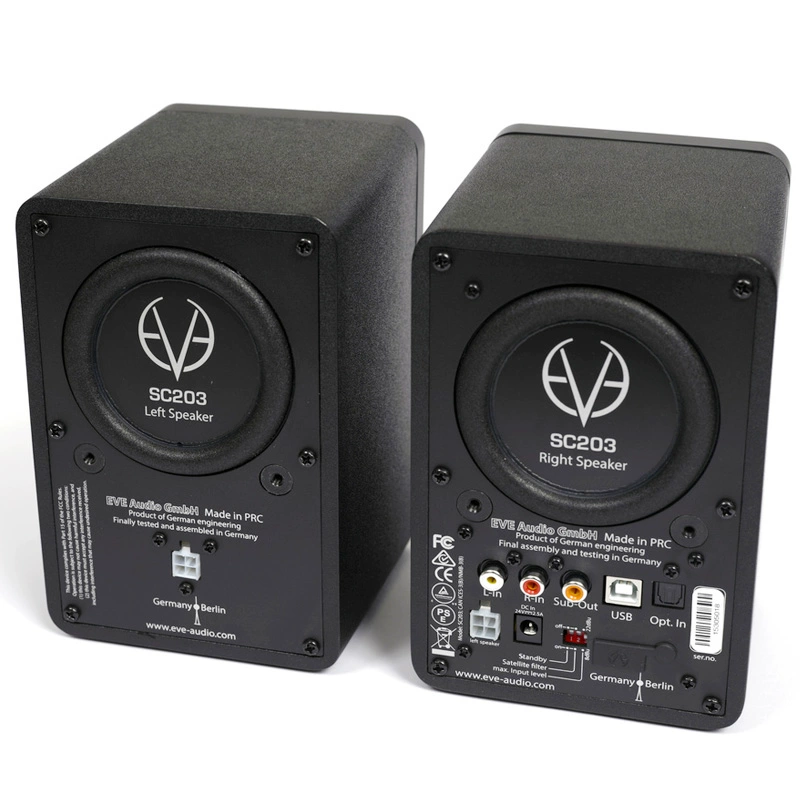 在SC203主/从系统从伊芙音频设有3"低音扬声器加上1"能够处理更长的线性冲程音圈。此外,扬声器还配备了一块巨大的驱动磁铁,可以作为强劲的引擎使用,即使在边界区域,也可以使低音扬声器保持稳定。使用16mm高的音圈,可以轻松实现±5mm的线性,来回摆动。SC203的背面配有无源辐射器。它加强了低频的再现,并允许扬声器响应低至62 Hz(-3 dB),失真极低。