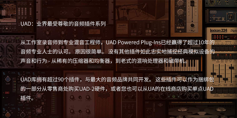 UAD-2 DSP可为您的PC或Mac工作站带来的UAD驱动插件-包括来自Studer,Ampex,Lexicon,Neve,Manley,Moog,Marshall,SSL等的模拟建模。