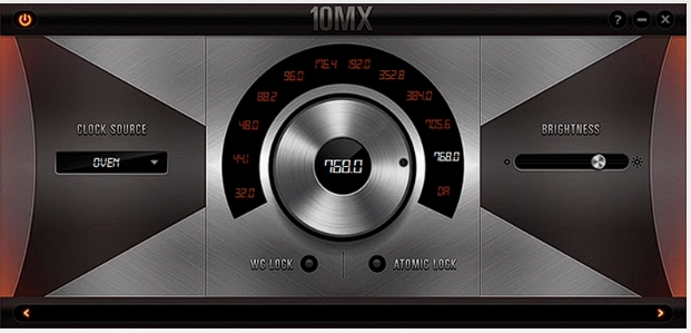 10MX是等时线系列中主要的产品。它兼具羚羊两款产品的技术。这款未来感十足,拥有1U机架空间外壳的产品兼具10M的原子精度与Trinity的精密的抖动管理,是稳定的音乐时钟。