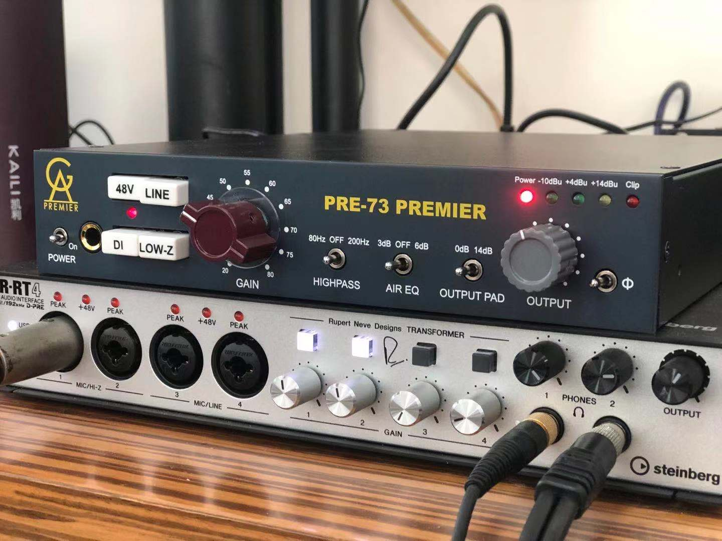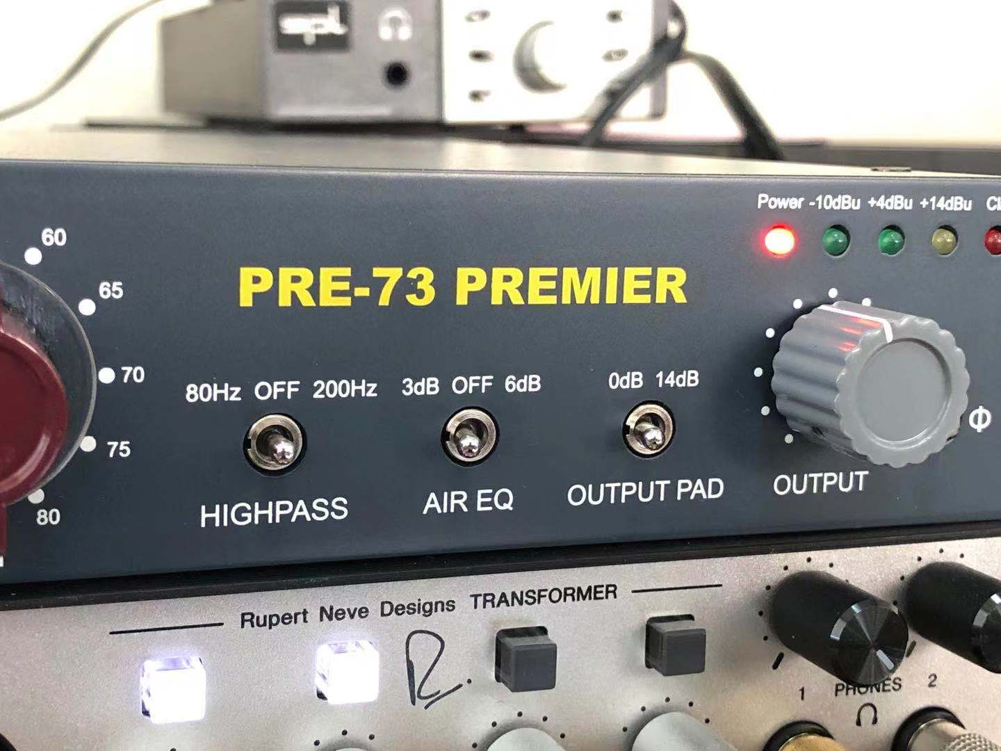 PRE-73 DLX PREMIER是一种单通道复古麦克风放大器,线路和乐器前置放大器。信号路径仅使用分立组件,电阻器,电容器和晶体管。线路和麦克风输入和线路输出使用三个不同的变压器进行了变压器平衡,每个变压器均针对其用途进行了优化。