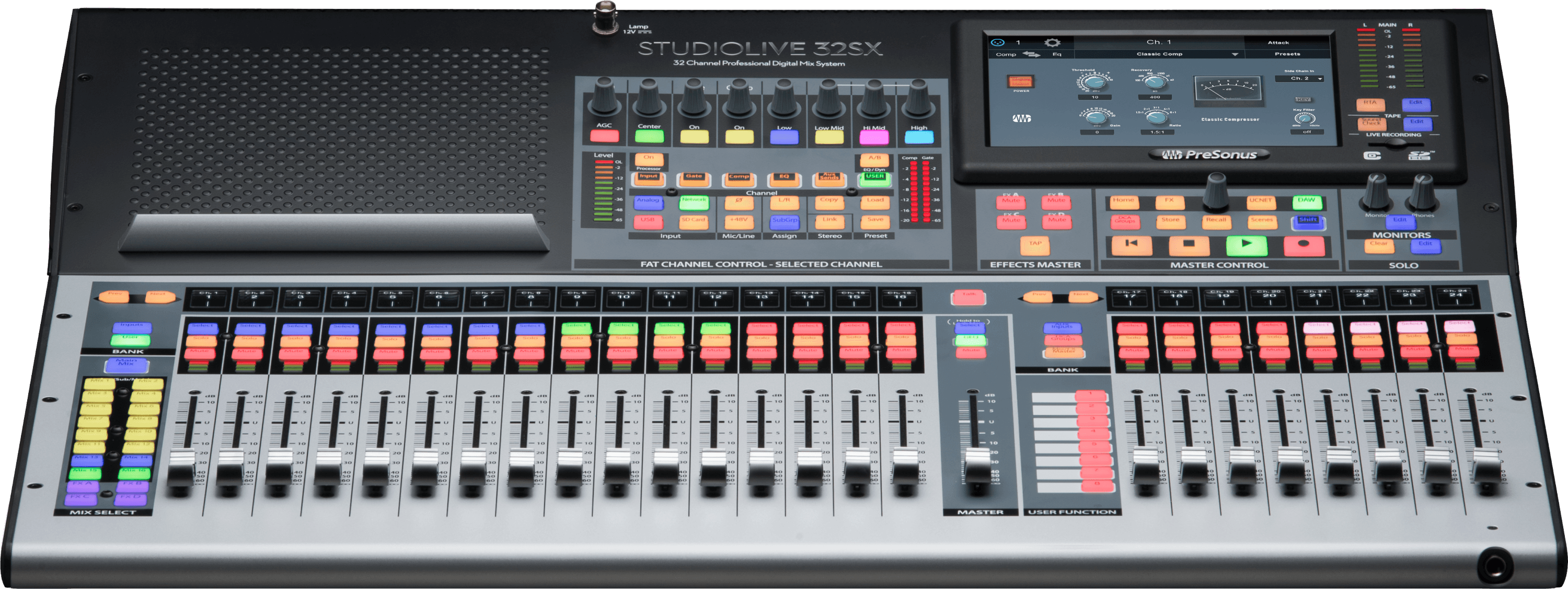 无论是在录音室还是在繁忙的音乐节舞台上,PreSonus设计的StudioLive 32SX数字调音台都可以来适应你们始终变化着的需求。它的16路FlexMix可以被独立地设置来服务于一个AUX总线、一个备用组别或是一个线阵MIX。八个专用效果总线外加立体声和单声道主总线造就了总数可达24的MIX总线外加一个独立的SOLO总线。我们也提供24组DCA,所以你可以更简单灵活地控制通道组别。