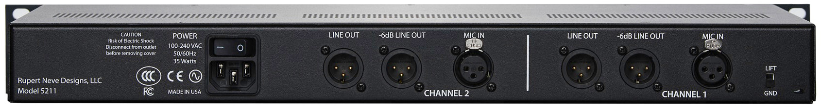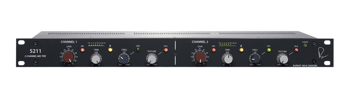 5211是Rupert Neve Designs推出的高品质双通道话放设备。基于与Shelford同样的定制输出变压器以 及A类放大电路设计,并完整保留Shelford Channel的双模式变压器输出设计,提供两种不同的输出电平 接口以匹配不同的接入设备。可调节的SILK电路能够为声音增加更多经典的谐波饱和特性。输入部分则 使用无变压器设计完全保留了麦克风原始的声音特性。这一切都使5211成为更加易用且具有经典声音特 性的话放设备。