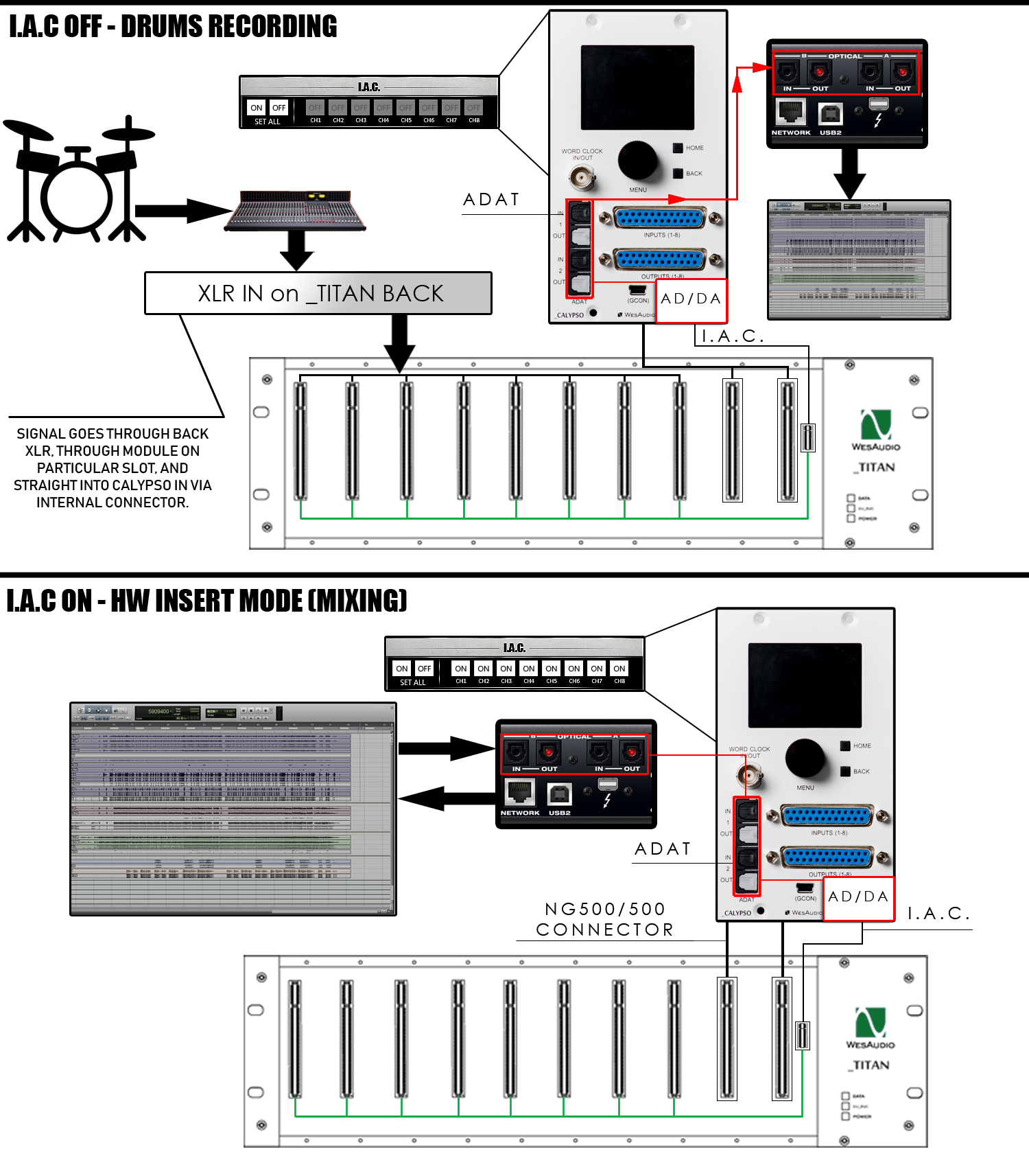 与_TITAN完全集成(只需要ADAT 电缆将所有信号路由到和从机箱)