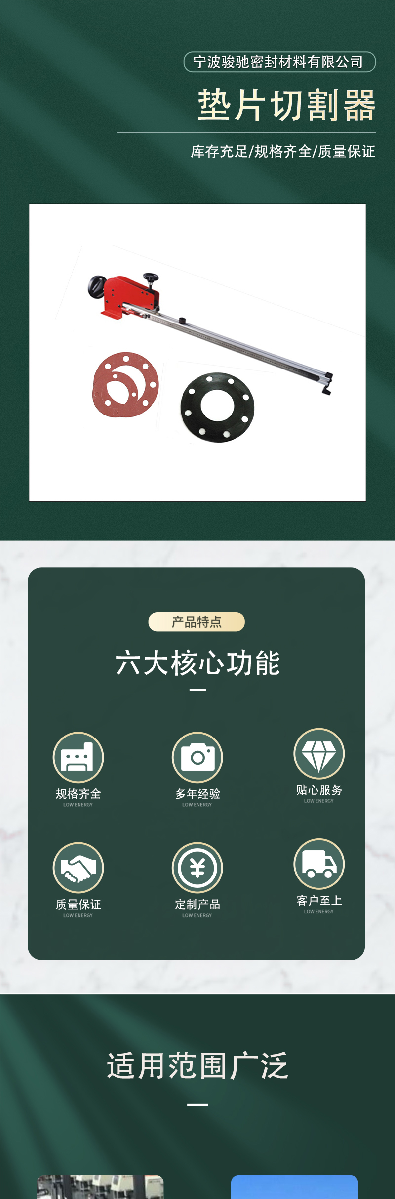 能切割任何石棉橡胶,无石棉纤维材料,PTFE,橡胶材料,石墨板等各种材质的垫片材料。 |