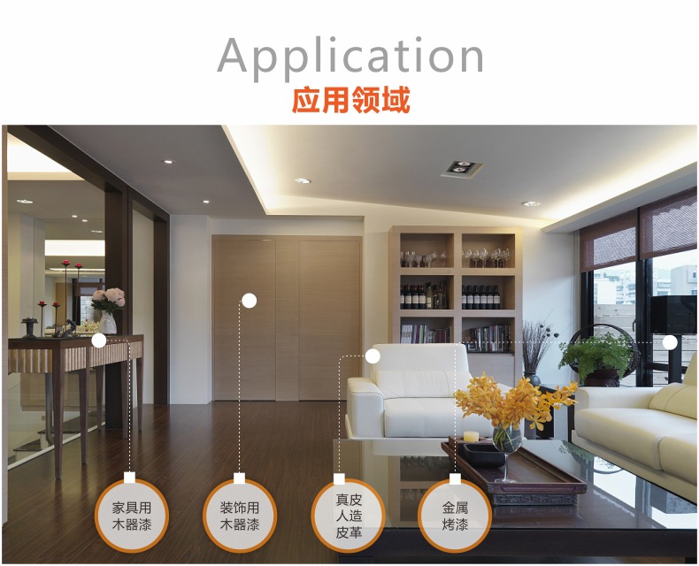通用型,可用于家具/装饰用木器漆、真皮/人造皮革、金属烤漆