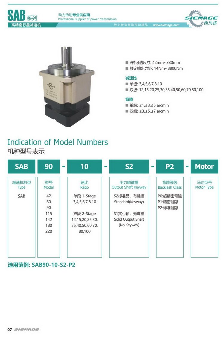 西马格行星减速机SADL精度4弧分单段滚珠轴承SIEMAGE步进电机