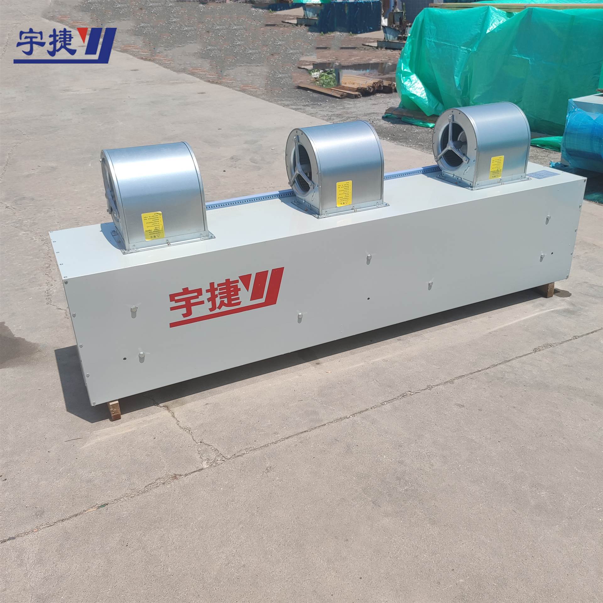 1.2米离心式电加热风幕机是一种结合离心风机与电加热技术的空气幕设备,专为工业和商业场所设计,具有高效送风、快速制热、节能静音等特点,适用于厂房、车间、商场等出入口的空气隔离与温度调节。以下为详细介绍: