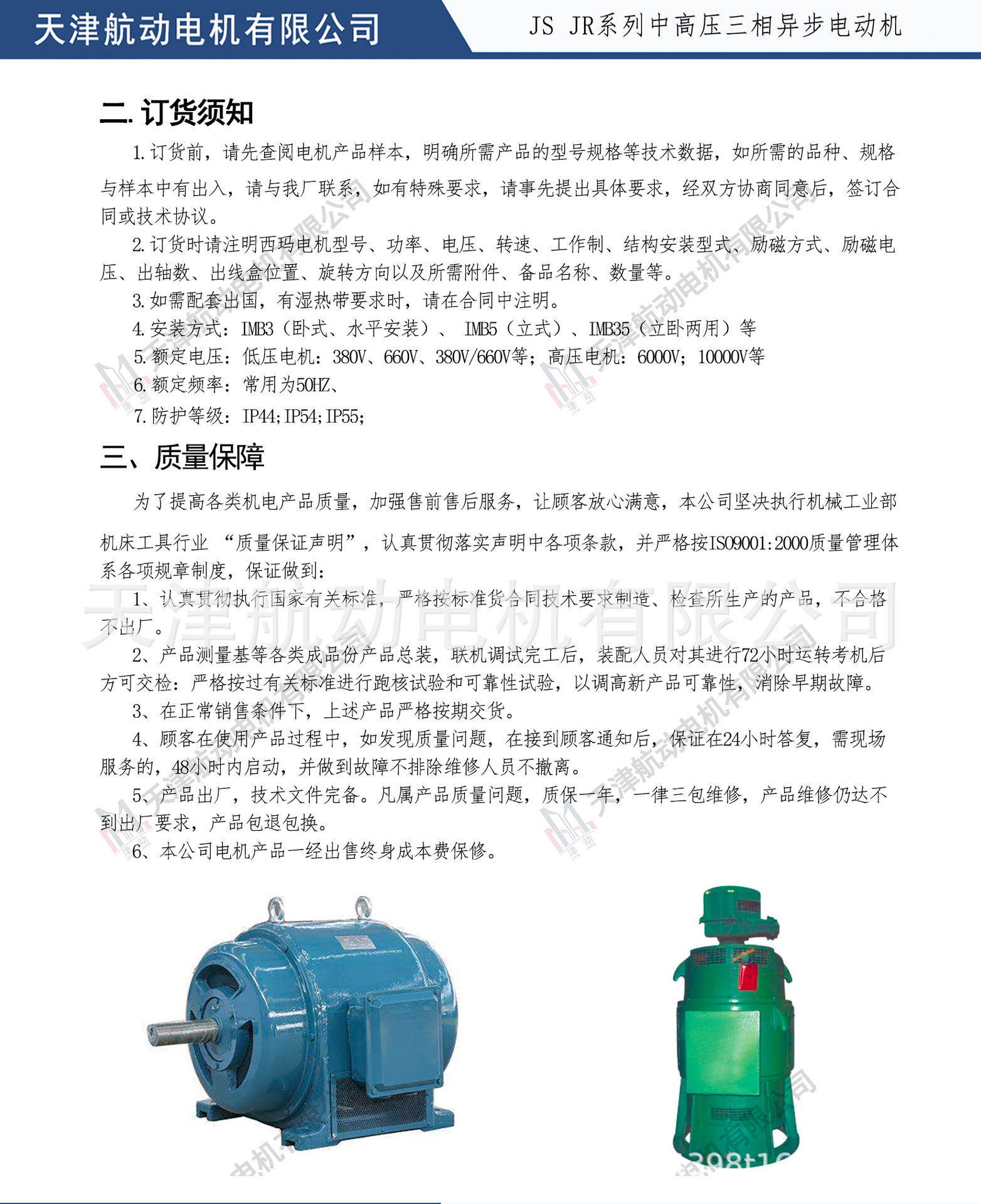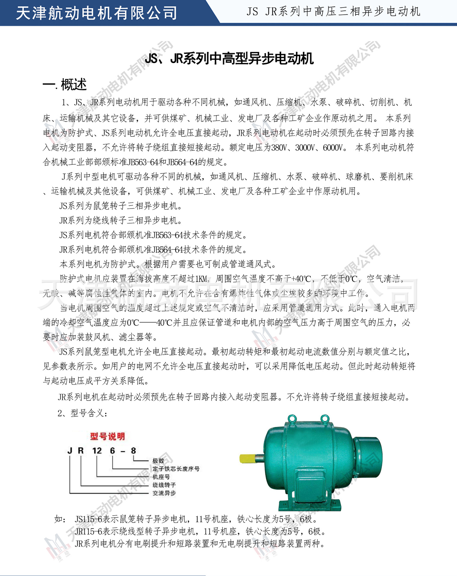 JR系列电机符合部颁机准JB564-64技术条件的规定。