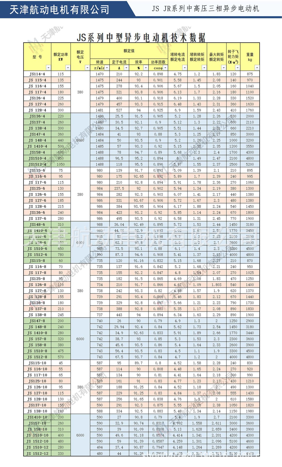 如:JS115-6表示鼠笼转子异步电机,11号机座,铁心长度为5号,6极。