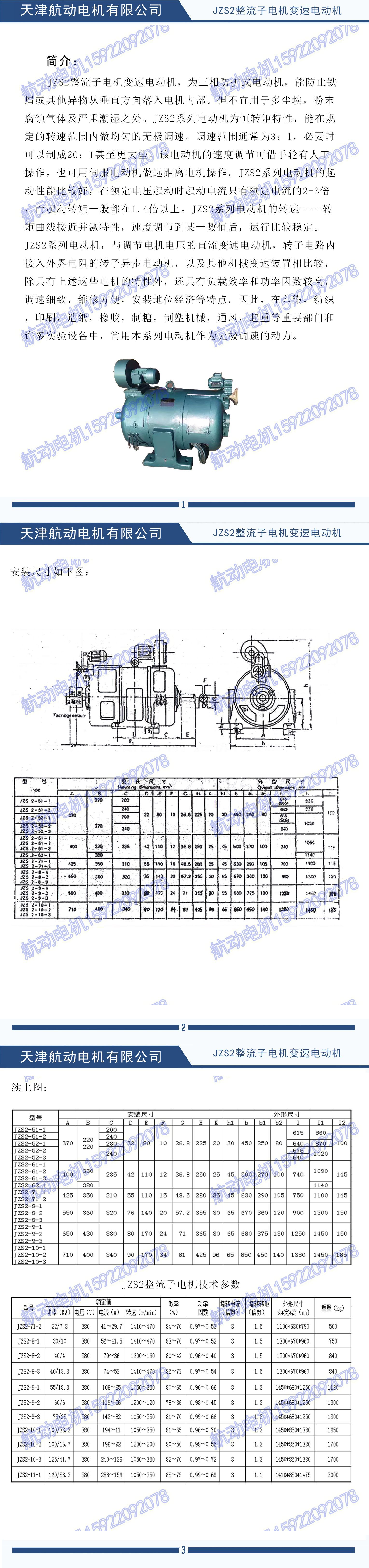 JZS2整流子电机变速电动机,为三相防护式电动机,能防止铁屑或其他异物从垂直方向落入电机内部。但不宜用于多尘埃,粉末腐蚀气体及严重潮湿之处。JZS2系列电动机为恒转矩特性,能在规定的转速范围内做均匀的无极调速。调速范围通常为3:1,必要时可以制成20:1甚至更大些。该电动机的速度调节可借手轮有人工操作,也可用伺服电动机做远距离电机操作。JZS2系列电动机的起动性能比较好,在额定电压起动时起动电流只有额定电流的2-3倍,而起动转矩一般都在1.4倍以上。JZS2系列电动机的转速----转矩曲线接近并激特性,速度调节到某一数值后,运行比较稳定。JZS2系列电动机,与调节电机电压的直流变速电动机,转子电路内接入外界电阻的转子异步电动机,以及其他机械变速装置相比较,除具有上述这些电机的特性外,还具有负载效率和功率因数较高,调速细致,维修方便,安装地位经济等特点。因此,在印染,纺织,印刷,造纸,橡胶,制糖,制塑机械,通风,起重等重要部门和许多实验设备中,常用本系列电动机作为无极调速的动力。