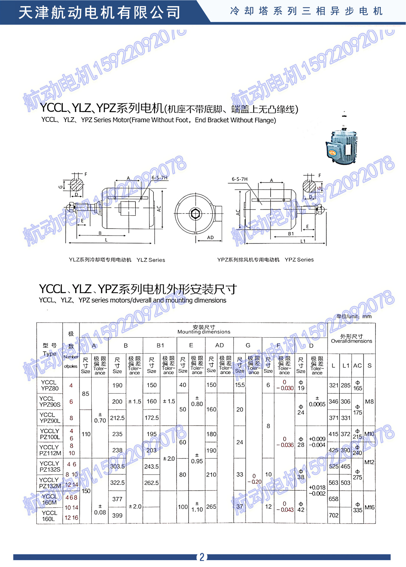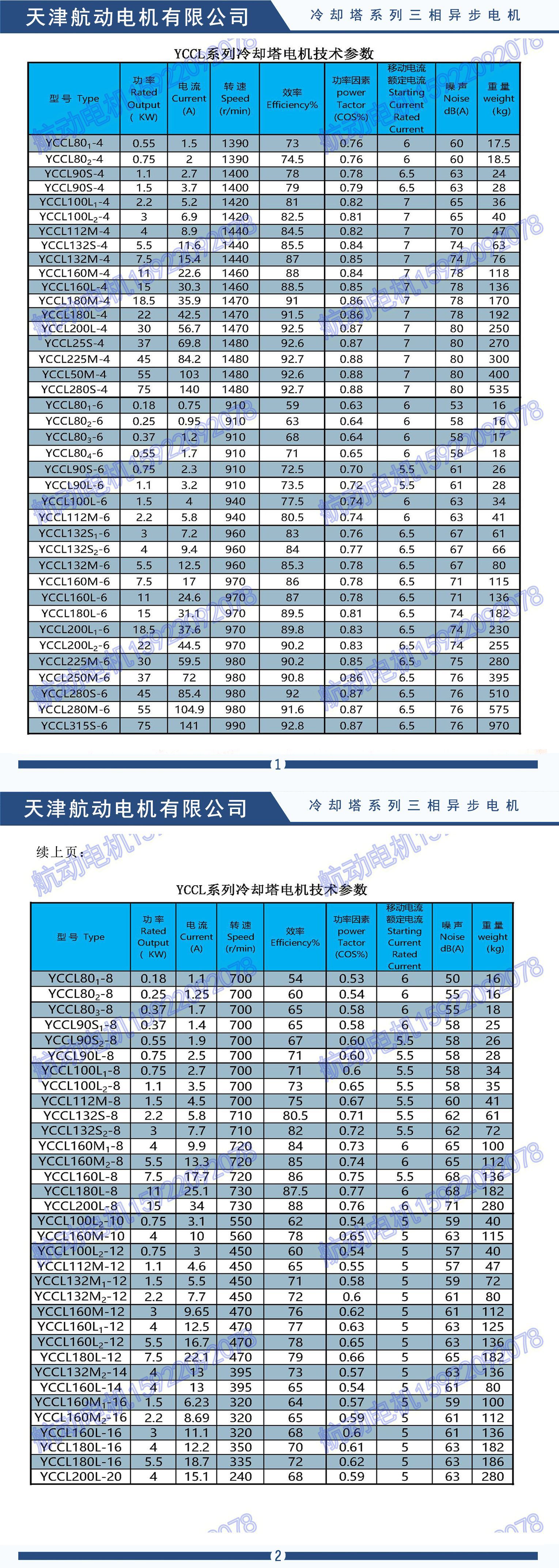 YLT、YLZC、YLF、YLF2、YLZ、YDL、YPZ、YCL、YCPL、YCLP、YCCL、YLZC、YSCL、YBCL系列冷却塔专用异步电动机是根据行业发展的需要而研制的,为使电动机充分满足低噪声冷却塔热功能要求以及在湿、热的环境中正常工作,电动机杂结构上采取了一系列的降噪声,减振、防水、防潮措施。该系列电动机具有高效节能,噪声低、振动小、启动性能好、运行可靠、防水、防潮等特点、是冷却塔的理想配套产品,该系列电动机额定电压380V,频率为50HZ,也可按用户要求制成其它电压、频率,防护等级IP55,采用B级绝缘或F级绝缘。