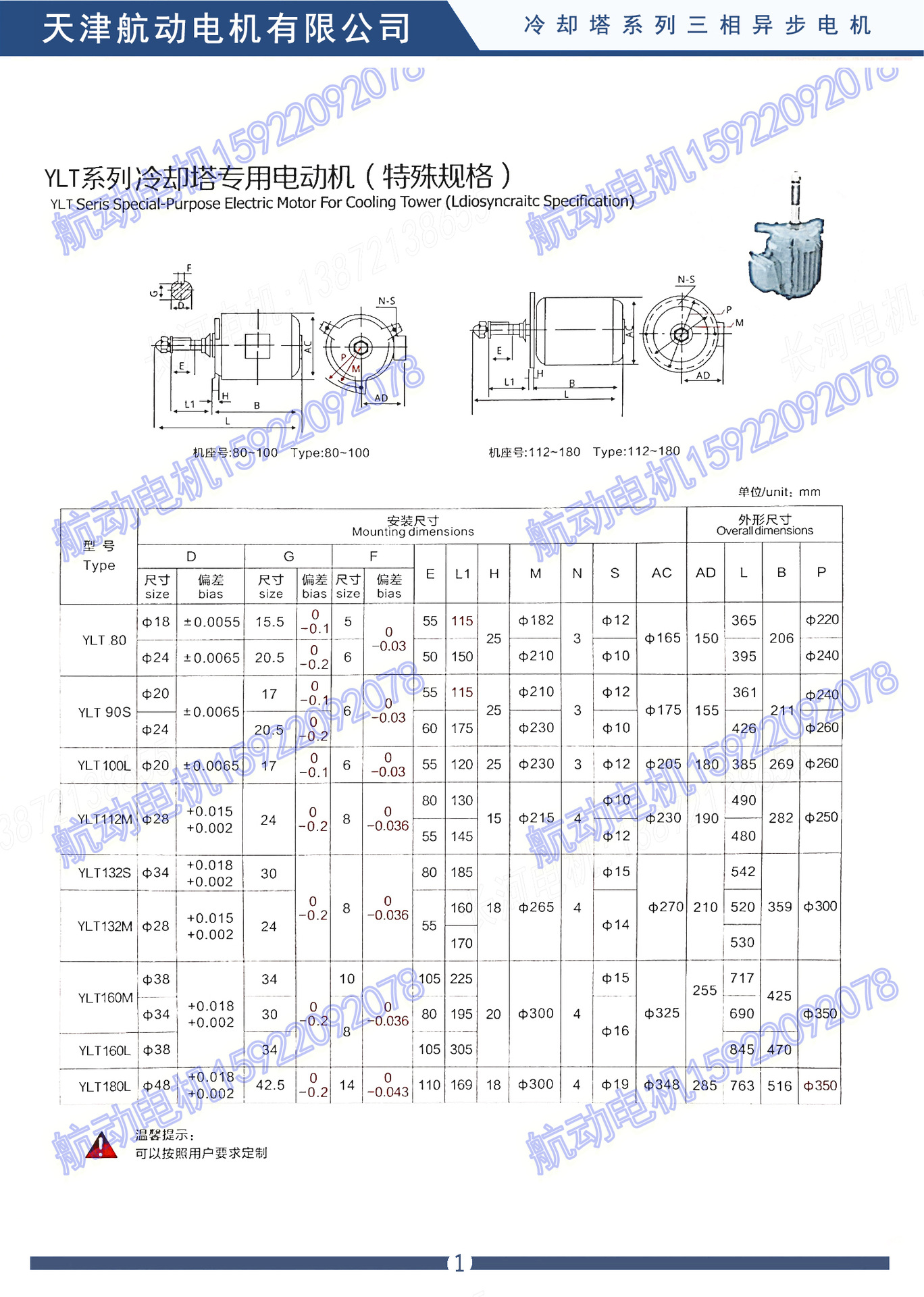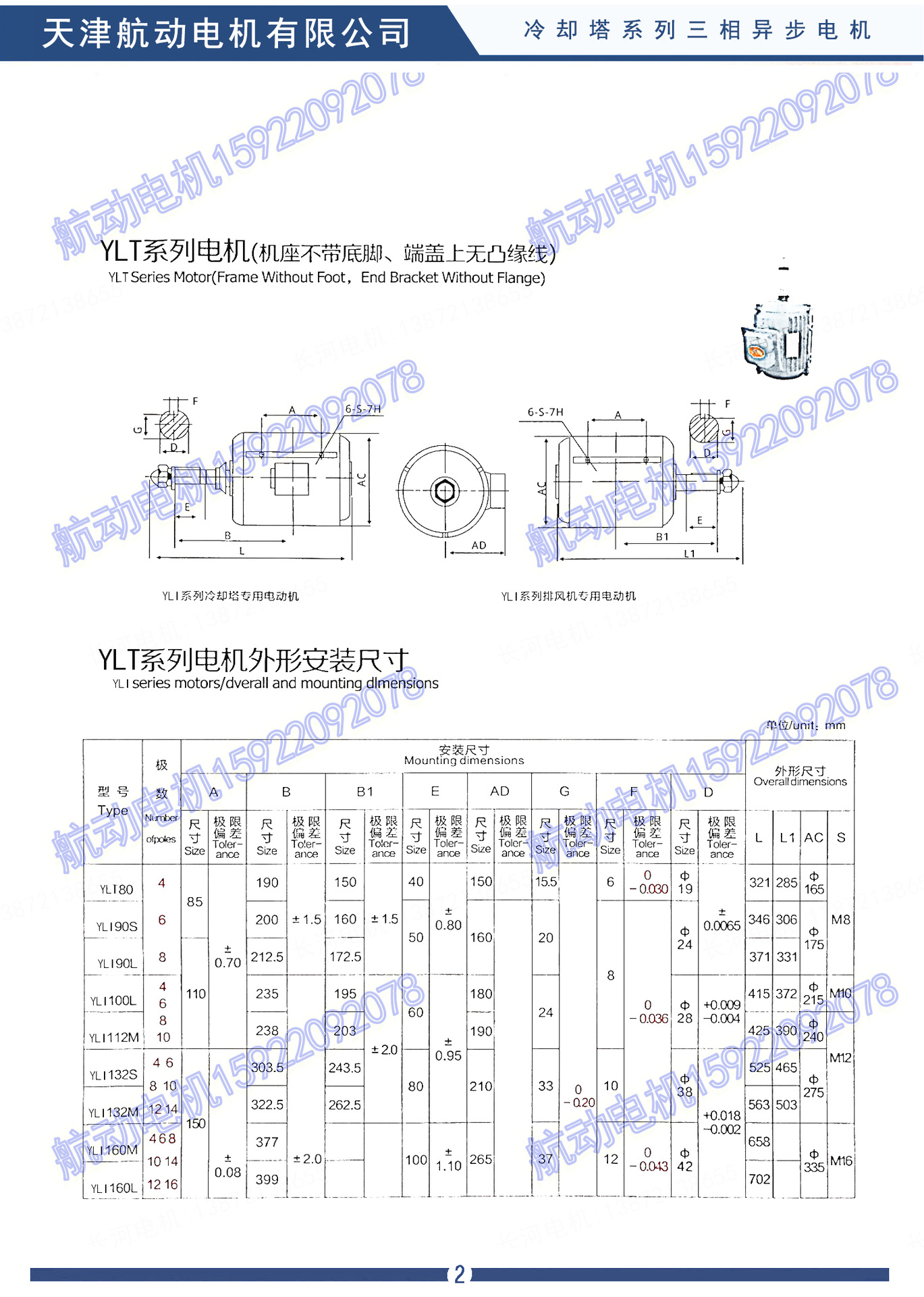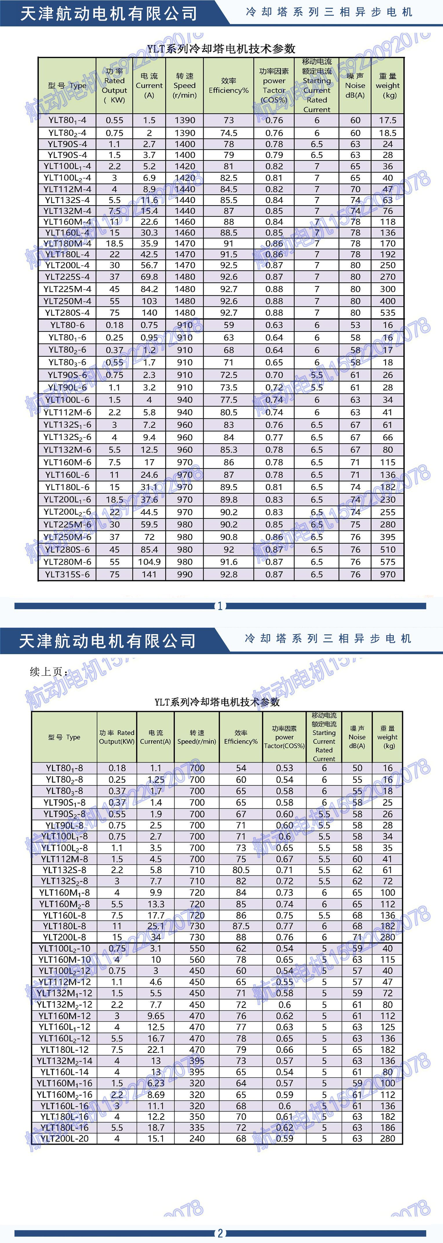 YLT、YLZC、YLF、YLF2、YLZ、YDL、YPZ、YCL、YCPL、YCLP、YCCL、YLZC、YSCL、YBCL系列冷却塔专用异步电动机是根据行业发展的需要而研制的,为使电动机充分满足低噪声冷却塔热功能要求以及在湿、热的环境中正常工作,电动机杂结构上采取了一系列的降早声,减振、防水、防潮措施。该系列电动机具有高效节能,噪声低、振动小、启动性能好、运行可靠、防水、防潮等特点、是冷却塔的理想配套产品,该系列电动机额定电压380V,频率为50HZ,也可按用户要求制成其它电压、频率,防护等级IP55,采用B级绝缘或F级绝缘。