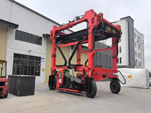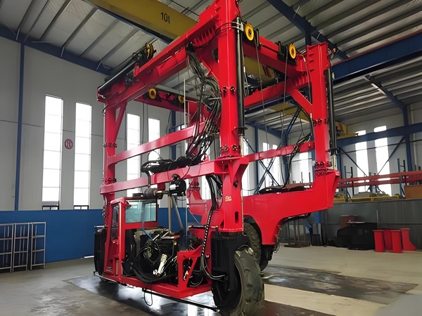 门架结构:呈 “门” 形框架,是跨运车的核心承载部件,由两根立柱、上横梁和下横梁组成,可跨骑 2-3 排集装箱(跨度通常 8-12 米)。门架高度决定堆垛层数,常规机型可堆垛 3-5 层集装箱(起升高度 8-12 米),部分大型机型可达 6 层以上。