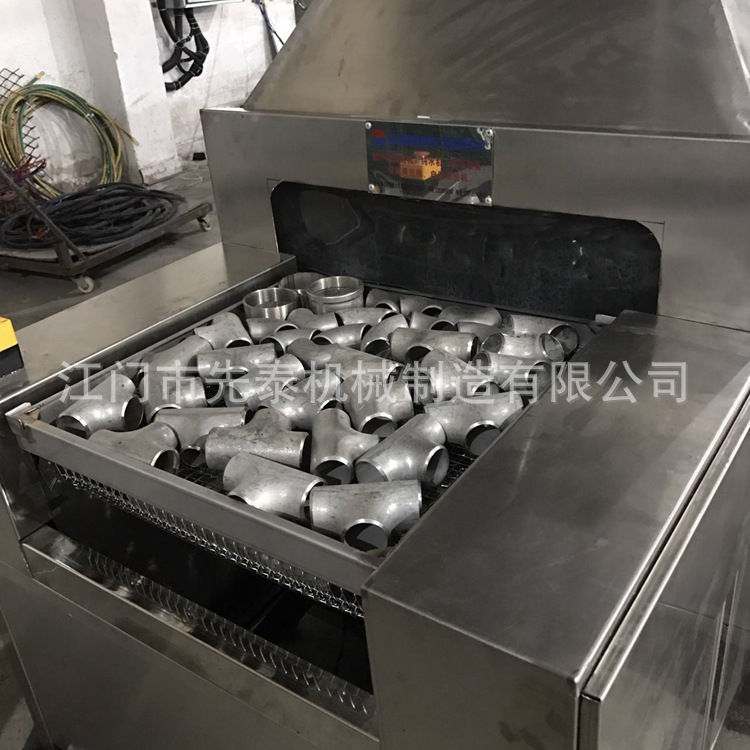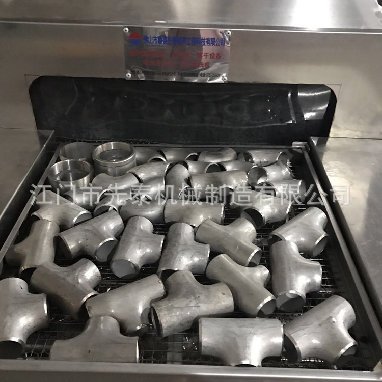 5、不锈钢水管清洗机 网带通过式三通弯头自动化除油清洗机采用变频调速器控制的调速电动机带动网带传动,噪声低,运行速度可调,运行平稳。