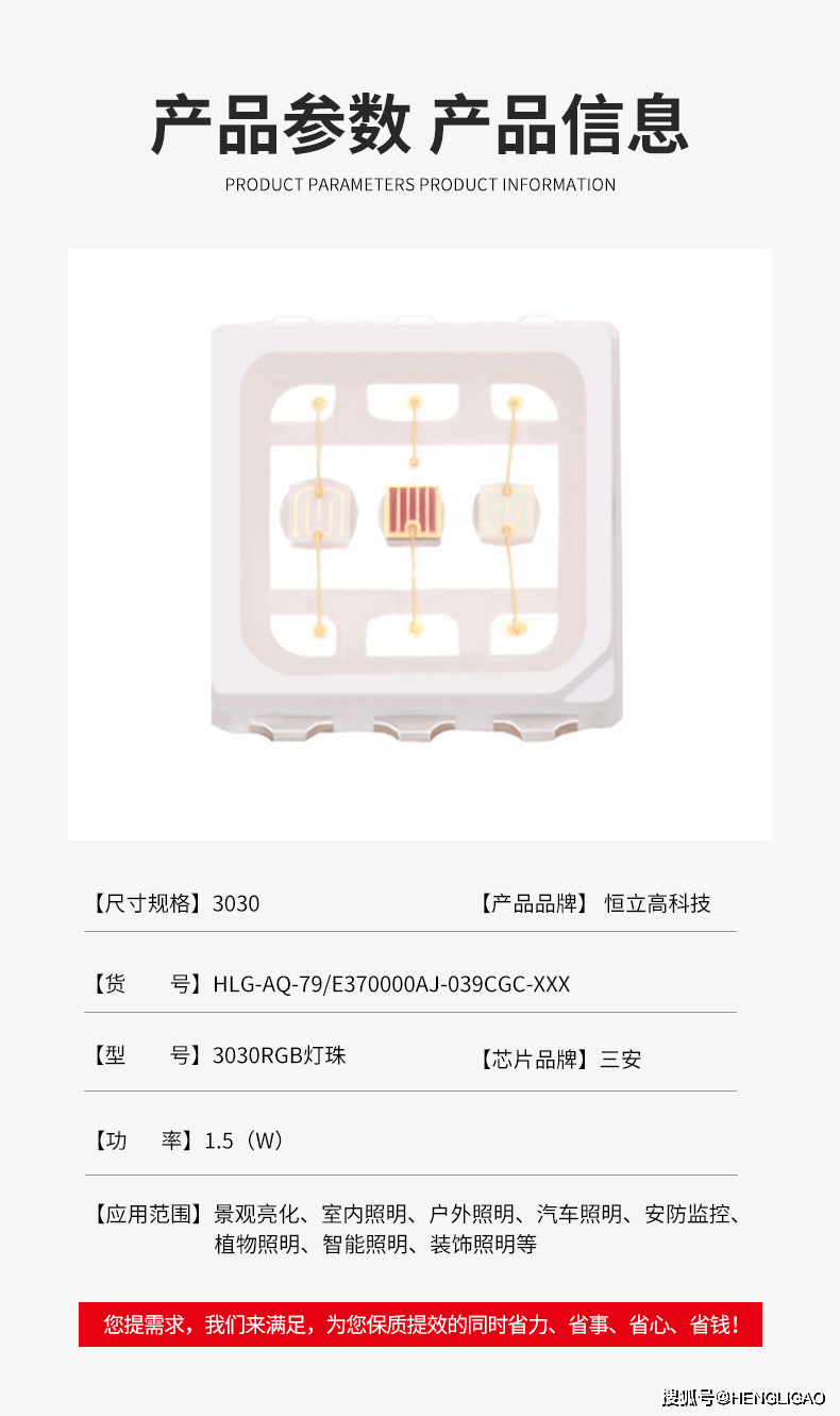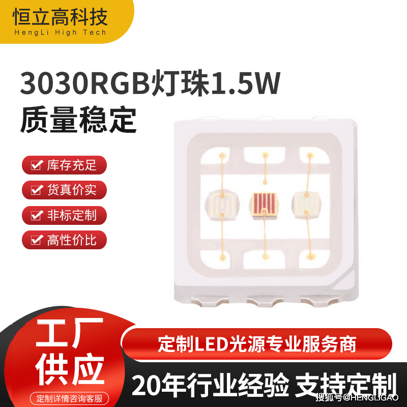 3030RGB灯珠 中功率1.5W 洗墙灯 投光灯 柔性洗墙灯用三合一全彩贴片LED灯珠,定制LED光源服务商-恒立高科技