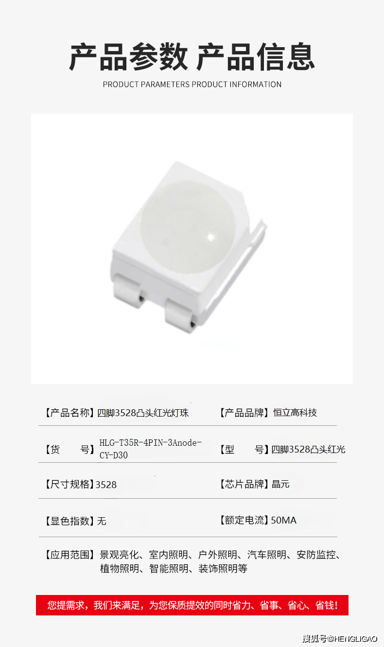 3528球头贴片LED灯珠 30度 欧司朗同脚位四脚3528凸头红光灯珠 ,优选定制LED光源服务商-恒立高科技