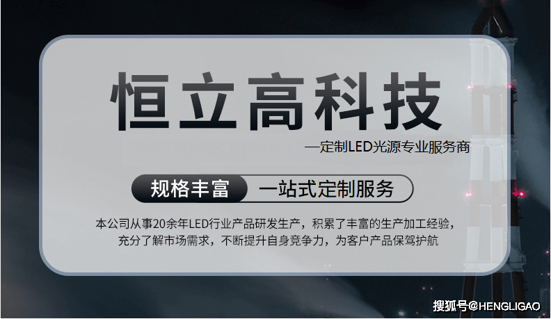 恒立高科技(深圳)有限公司是一家定制LED光源服务商,我们采用CREE科锐芯片、OSRAM欧司朗芯片、EPISTAR晶元芯片、 SANAN三安芯片、Dow Corning道康宁胶水等全球先进的关键元器件及解决方案,提供定制LED光源服务,努力为客户解决产品同质化、行业内卷、创新乏力、新市场开发难等LED细分领域所面临的各种课题,我们将提供更全面的定制LED光源、更的服务、更优异的解决方案、更好的满足市场需求,为客户创造更大价值,为人类提供更舒适的光环境。