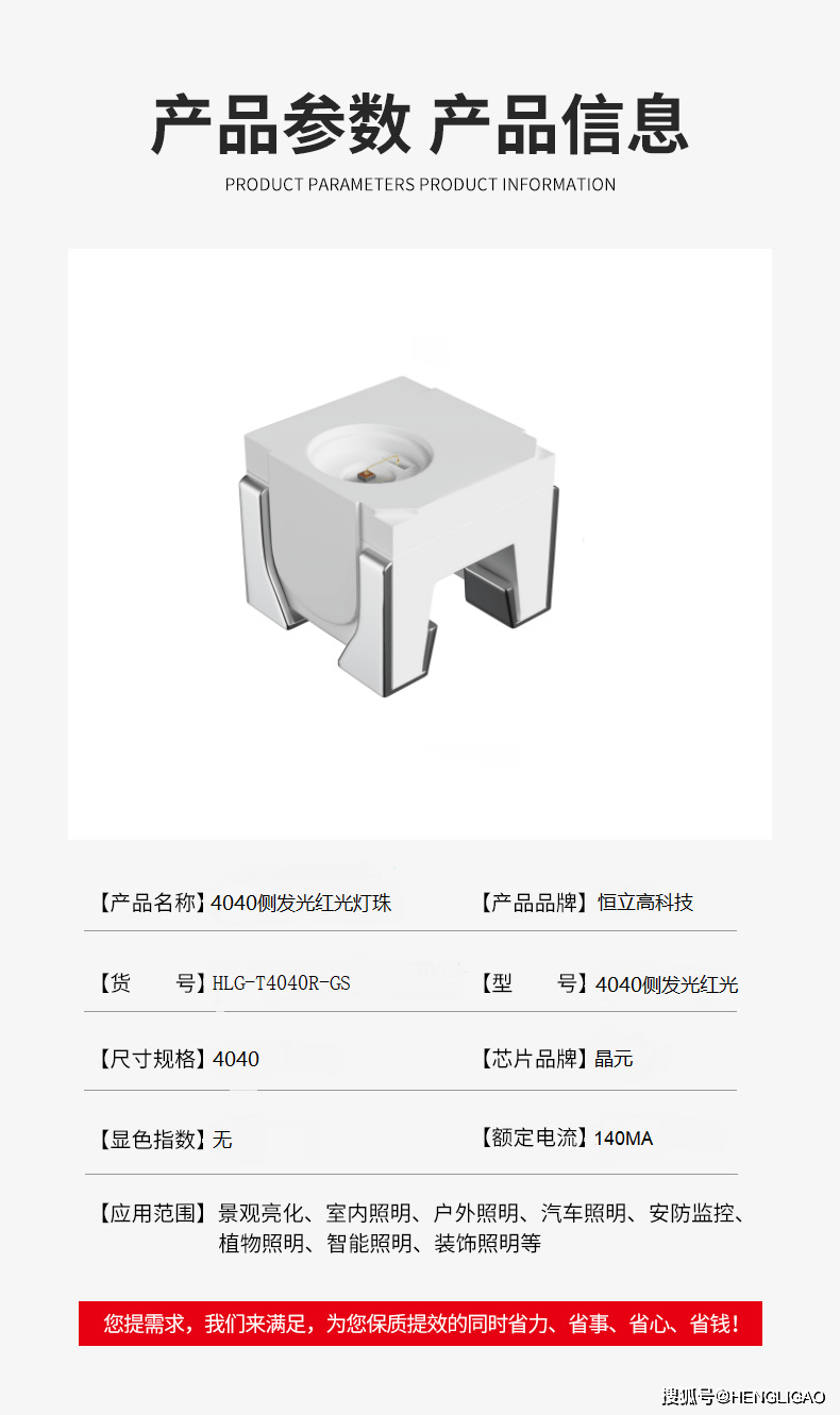 4040灯珠 侧发光红光灯珠 欧司朗同款4040侧发光LED灯珠,优选定制LED光源服务商-恒立高科技