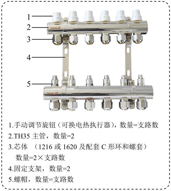 2-8路海林集分水器DN25主管1620支管分水器 西安地暖集分水器 2-8路 HAILIN海林分集水器 1寸主管 分室控制地暖分集水器 TH35 海林2-8路一体型智能控温型分集水器TH35D25C1216-2/3/4/5/6/7/8