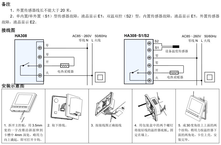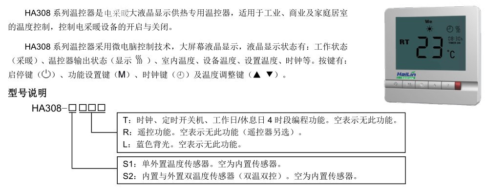 HA308 系列温控器安装使用说明