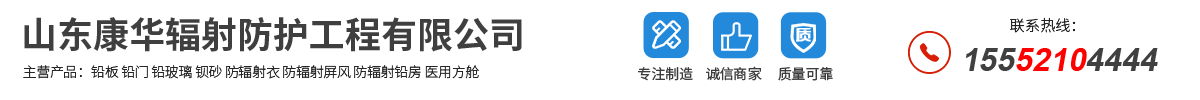 山东康华辐射防护工程有限公司 产品齐全: 有X、γ射线手动平开、推拉防护门窗,电动平开、平移(中子、质子)防护门;各种铅当量的照相机房;铅玻璃、传片箱、储片箱、铅防护屏、介入防护;铅衣、铅帽、铅手套、铅眼镜;铅板、防辐射钡沙砂、射线复合防护材料等防护器材,具备完善的质量保证体系和售后措施。