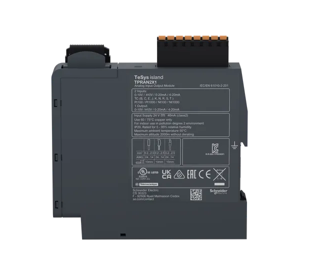 ?TPRAN2X1是Schneider Electric公司生产的一款TeSys island模拟量输入/输出模块?。该模块具有2个模拟量输入和1个模拟量输出,主要用于在TeSys island系统中实现高级控制功能。TPRAN2X1模块需要连接到TPRBC总线耦合器才能正常工作?12。