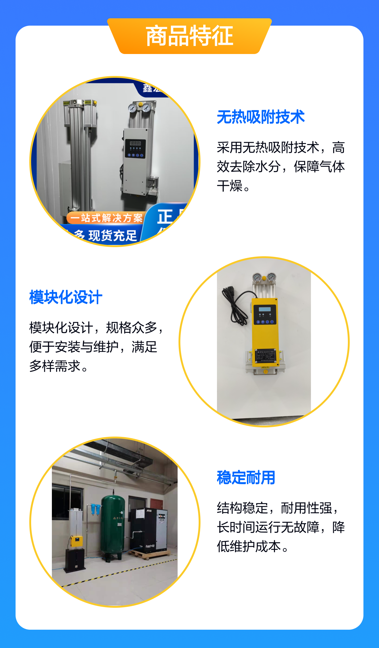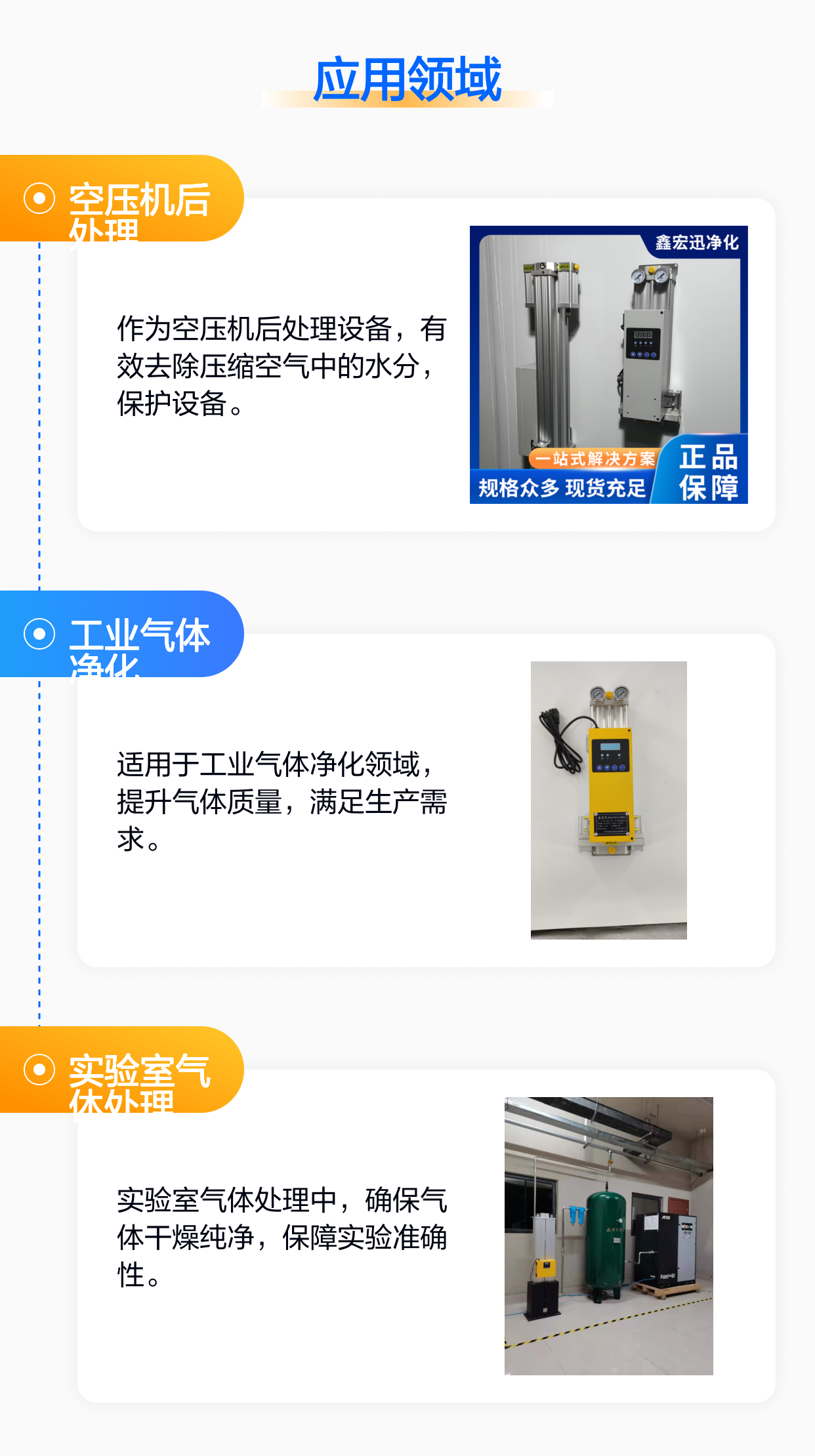 广泛用于对压缩空气干燥度、洁净度要求极高的工业场景。 电子/半导体, 医药/生物, 食品饮料, 汽车制造, 化工/石油, 电力/能源, 精密制气动控制, 电子封装, 医药/食品,天然气/氢气等行业 |