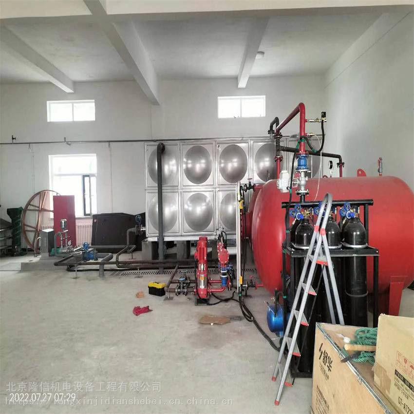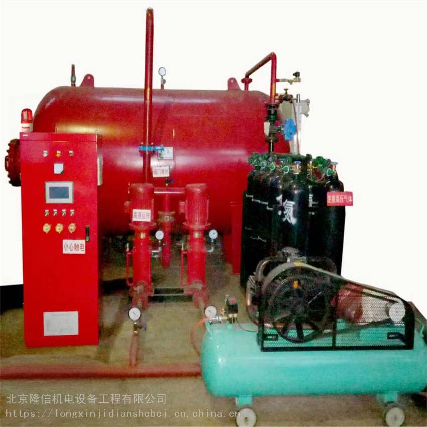 消防气体顶压给水设备是一种新型固定灭火装置,它既能提供消防给水系统稳定压力,以维持建筑物室内消火栓管网和自动水喷淋管网消防水压,也可以替代室内消防水箱储存供给10min的消防用水量,特别适合不宜设置高位水箱的建筑。传统的重力自流式的水箱供水安全可靠,但它一般要设置在建筑物的顶部(****部位),对于建筑结构承重或建筑物的外观美感都会造成一些不利影响。消防气体顶压给水设备,同一般设于建筑物屋顶的高位水箱和消防水稳压系统相比,缩短了消防给水管网,占用建筑物面积少,建设工期短、施工安装方便、节省了管材等****费用,且具有供水压力平稳、便于实现集中自动控制、工作安全可靠等优点。