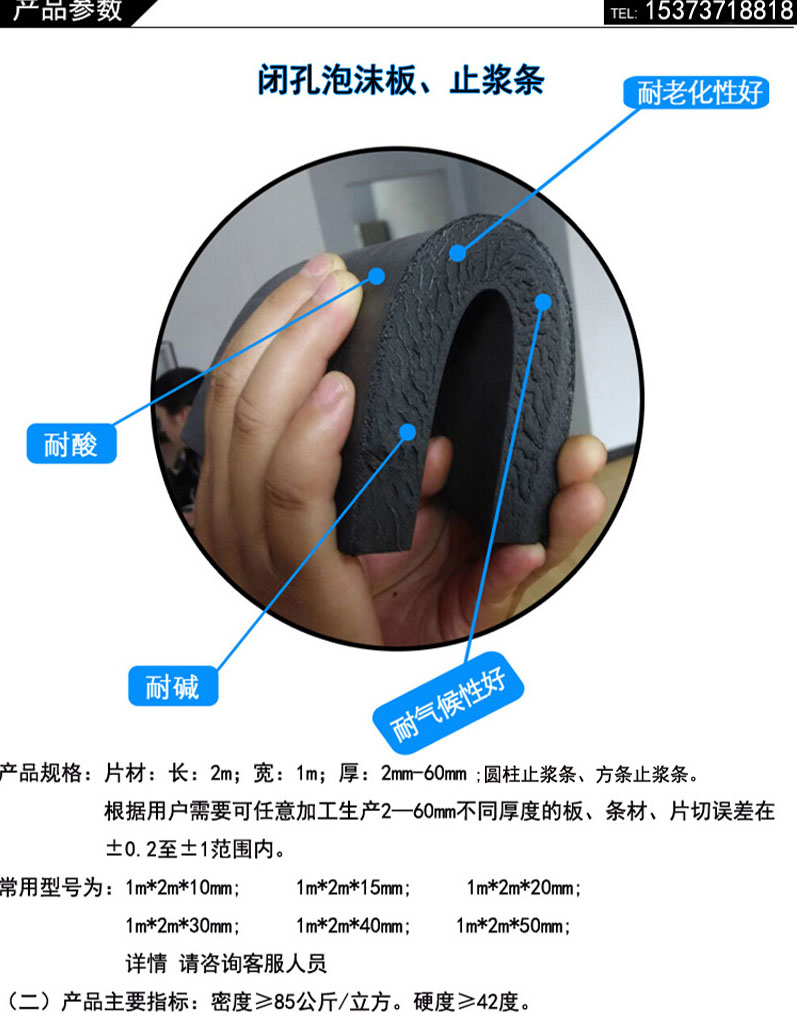 止浆条,闭孔泡沫板 |