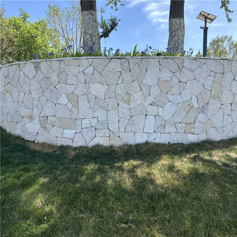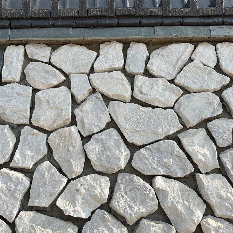 经济型家装 别墅外墙线条 白色文化石景墙 天然白砂岩碎拼石凭借其独特的自然属性与装饰优势,在家装和景观设计领域独树一帜。从外观上看,白砂岩碎拼石以纯净柔和的米白色为主色调,色泽温润自然,仿佛承载着岁月沉淀的温柔质感。其表面布满天然形成的砂质纹理,细腻中带着质朴,每一块碎拼石的纹路都独一wu二,或如潺潺流水般蜿蜒,或似轻柔云絮般舒展,拼接后形成极具艺术感的画面,为空间注入灵动的自然气息。在材质特性方面,白砂岩碎拼石质地相对疏松,具有良好的透气性,这种特性使其能调节室内湿度,为居住者营造舒适的生活环境。同时,它硬度适中,既有一定的抗压耐磨能力,又便于切割和加工,可根据不同的设计需求,打造出多样的造型和图案。而且,白砂岩属于天然石材,在加工过程中不添加有害化学物质,环保性能优越,能够保障室内外空间的健康安全。在装饰应用上,白砂岩碎拼石适应性广泛。室内铺设时,无论是地面、墙面还是背景墙,都能为空间增添温馨自然的氛围,与简约、北欧、田园等多种装修风格相得益彰;用于室外景观打造,如庭院步道、花园围墙、景观小品等,它能与绿植、水景完美融合,呈现出和谐的户外景致。此外,白砂岩碎拼石的碎拼设计打破了传统石材的规整单调,通过不规则的拼接方式,赋予空间独特的视觉层次感和趣味性。在维护保养方面,白砂岩碎拼石相对容易打理。日常只需用软布或扫帚清理表面灰尘,若遇到污渍,用温和的清洁剂擦拭即可。尽管其质地疏松,但通过适当的防护处理,能有效增强抗污性和耐久性,延长使用寿命。白砂岩碎拼石凭借美观、实用、环保等多重特点,成为提升空间品质与格调的理想装饰材料。