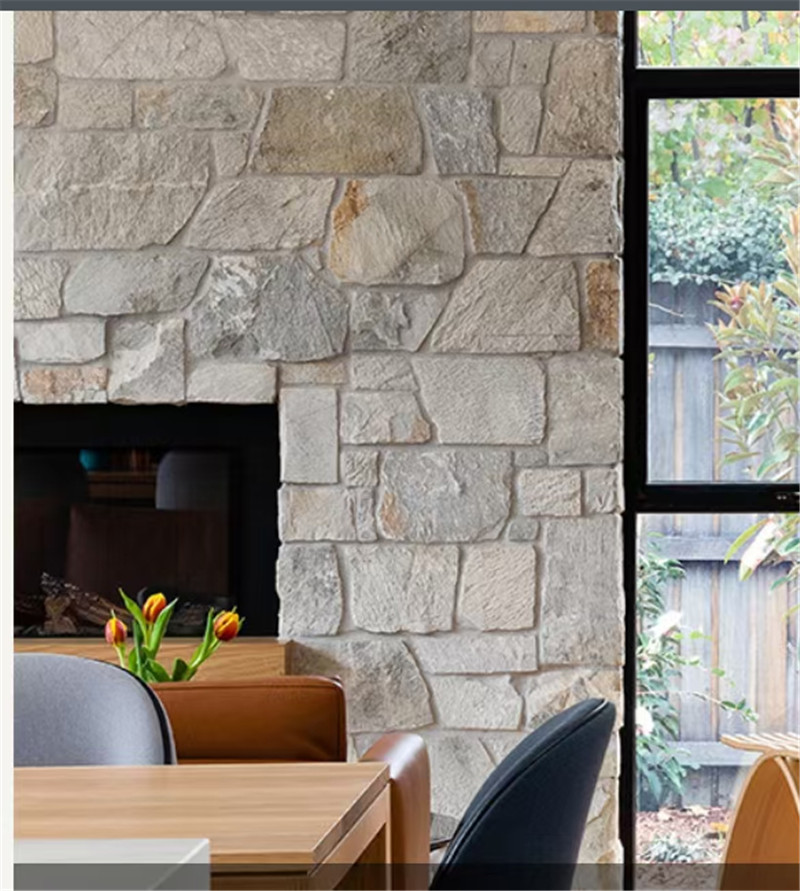 天然白砂岩碎拼石 经济型家装 别墅外墙线条 白色文化石景墙颜色洁白,能给人带来简洁、纯净、明亮的视觉感受,使空间显得宽敞、通透,可营造出高雅、清新的氛围,容易与各种装修风格和色彩搭配相融合,无论是现代简约风、欧式古典风还是日式禅意风等,都能展现出独特的韵味。文化石本身具有天然的纹理,白色文化石也不例外。其纹理多样,有的如天然岩石的层理,有的似不规则的裂纹,还有的呈现出颗粒状或块状的质感,这些纹理为墙面增添了自然的韵味和艺术感,使墙面不会因颜色单一而显得单调,每一块文化石的纹理都是独一无er的,拼接在一起后形成了独特的装饰效果。文化石具有一定的吸音性能,白色文化石墙面可以吸收部分声波,减少声音的反射和传播,从而在一定程度上降低室内噪音,提高居住或工作环境的安静舒适度,尤其适用于对声学环境有要求的空间,如卧室、书房、会议室等。白色文化石墙面有一定的保温隔热作用。它可以在一定程度上阻挡热量的传递,减少室内热量的散失或外界热量的传入,有助于调节室内温度,降低能源消耗,起到节能的效果,使室内在夏季更凉爽,冬季更温暖。白色文化石通常具有较好的防火性能,属于不燃材料。在发生火灾时,它能够延缓火势的蔓延,为人员疏散和消防救援争取时间,提高建筑物的消防安全等级,保障人们的生命和财产安全。zhi质的白色文化石通常采用天然石材加工而成,不含有害物质,如jia醛、苯等,对人体健康无危害,符合环保要求,能够为人们创造一个绿色、健康的生活和工作空间。文化石具有较高的硬度和强度,白色文化石墙面经过合理的安装和维护,可以使用很长时间。它不易褪色、不易变形,能够承受一定的外力冲击和日常磨损,抵御风吹、日晒、雨淋等自然因素的侵蚀,保持良好的外观和性能。白色文化石一般尺寸较小,重量相对较轻,安装方便。可以采用粘贴或干挂等方式进行施工,施工过程相对简单,能够提高施工效率,缩短工期。同时,文化石的拼接方式灵活多样,可以根据设计需求进行各种图案和造型的组合,满足不同的装修创意。白色文化石墙面的维护较为容易。日常只需定期用干净的湿布擦拭,去除表面的灰尘和污渍即可。如果有局部损坏,更换也比较方便,只需将损坏的文化石取下,更换上新的即可,不会对整个墙面造成太大影响。