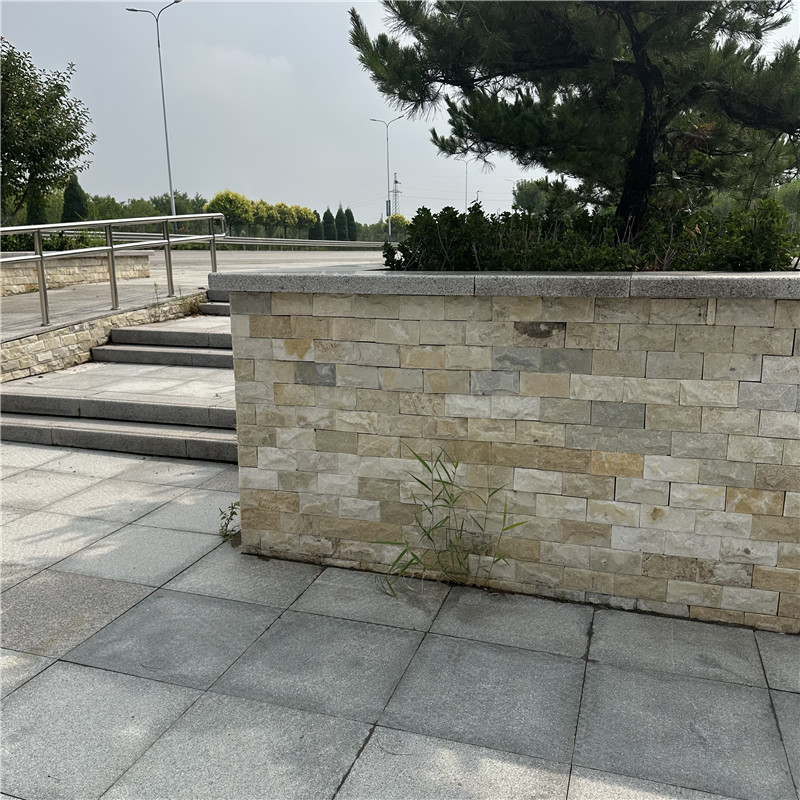现代景观 虎皮石碎拼石文化石 黄木纹冰裂纹 黄色蘑菇石外墙砖以天然石材为原料,经切割加工形成 “帽檐 + 柱体” 的蘑菇状立体形态,凭借暖调黄色基底、粗犷表面肌理与独特造型,适配乡村风、自然系、新中式等多种装饰风格。它区别于普通平板石材的平面感,以 “错落立体 + 暖色质感” 传递山野自然气息,既能作为墙体装饰主材,又能点缀景观细节,其特性与应用可从材质肌理、场景适配、搭配养护三方面展开,助力打造兼具个性与温馨感的空间装饰。