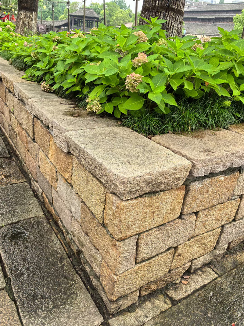 黄色垒墙石的应用场景十分广泛。在建筑领域,它常被用于别墅、复古建筑的墙体砌筑,为建筑增添一份古朴与典雅的气质,让人仿佛穿越回了过去的时光。在园林景观中,黄色垒墙石可以用来堆砌花坛、花池的边缘,既能起到保护花卉植物的作用,又能为园林增添一道亮丽的风景线;也可以用于铺设园路,引导人们在园林中漫步,感受自然的美好。此外,在河道护坡、挡土墙等水利工程中,黄色垒墙石凭借其坚固的质地和良好的抗腐蚀性,能够有效地防止水土流失,保护河岸和山体的稳定,为生态环境的保护贡献一份力量。