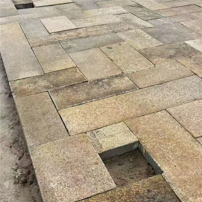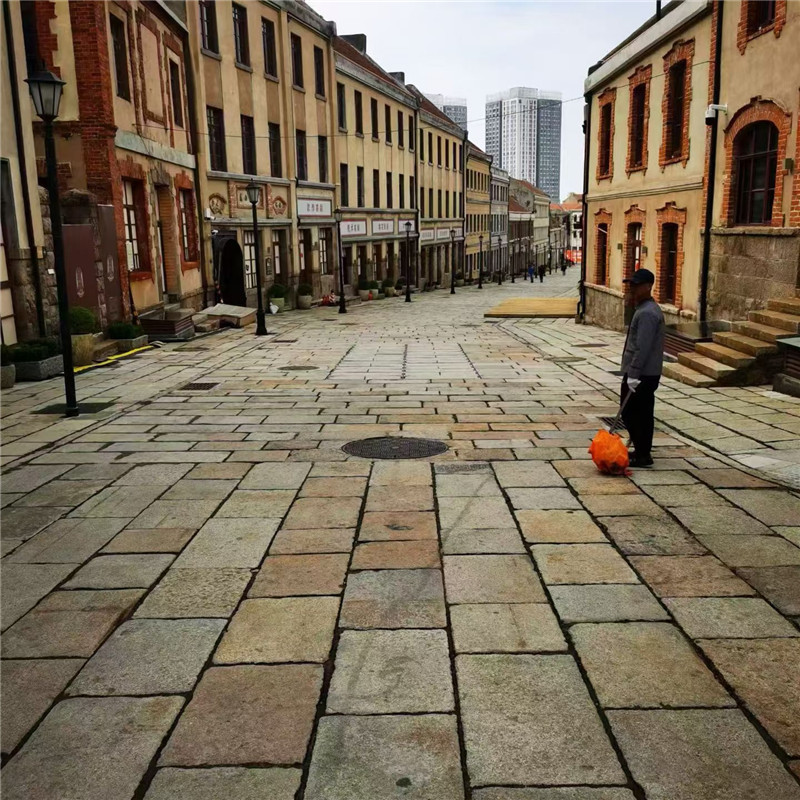 在场景应用中,仿古旧石板凭借 “复古可控 + 实用便捷”,成为多场景的优选材料。室外场景里,适配复古风与新中式:庭院步道铺装时,选用中度仿古花岗岩旧石板(芝麻灰色)按 “错缝干铺” 施工,缝隙填充浅灰色细砂,两侧搭配黛瓦矮墙、石灯笼与红枫绿植,fu刻的风化纹理与中式元素相融,营造 “古院新韵” 的氛围,花岗岩材质耐候性可应对长期日晒雨淋;复古风商业街区地面铺装时,采用重度仿古石灰岩旧石板(米黄色)满铺,搭配红砖墙面、复古招牌与铸铁路灯,仿老石板的凹凸肌理强化 “民国老巷” 格调,统一规格降低大面积施工难度;新中式民宿水景周边铺地时,用轻度仿古大理石旧石板(卡拉拉灰)弧形铺装,水流漫过石面时,柔和色调与蓝色水景形成对比,搭配水生鸢尾与鹅卵石,还原 “自然水岸” 意境,防滑处理(摩擦系数≥0.75)保障行人安全。