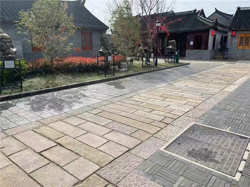 条石地面在性能方面表现出色。首先是其坚固耐用,条石一般采用花岗岩、砂岩、大理石等坚硬的天然石材制成,具有较高的抗压强度和耐磨性,能够承受较大的压力和频繁的踩踏,不易出现裂缝或破损,使用寿命长。其次,条石地面具有良好的防滑性能,其表面的纹理和凹凸不平的质感可以增加鞋底与地面之间的摩擦力,有效防止行人滑倒,即使在潮湿的环境下也能确保行走安全。此外,条石地面还具有较好的耐候性,能够抵御风吹、日晒、雨淋等自然因素的侵蚀,不易褪色、变形或风化,始终保持其原有的美观和性能。